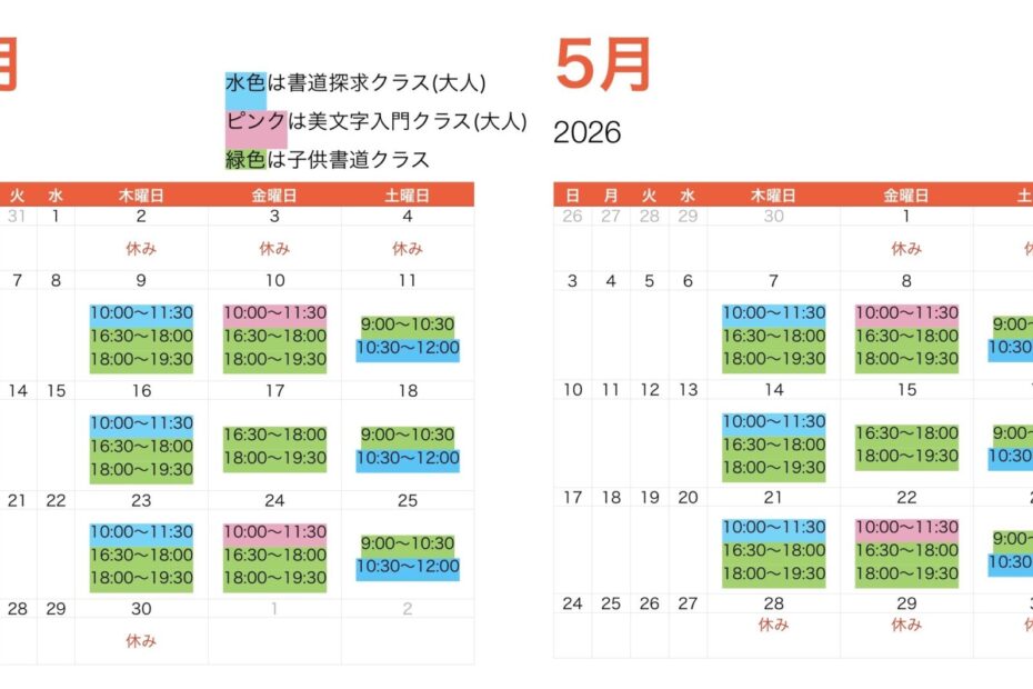 4月5月のお稽古予定表