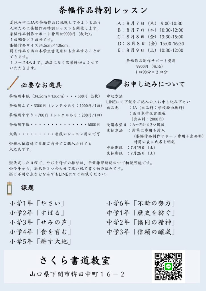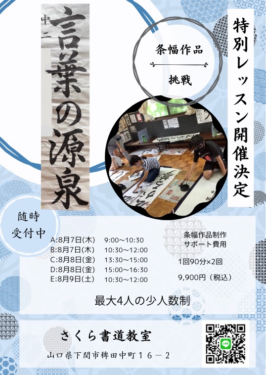 さくら書道教室では、無料体験レッスンを実施中です。